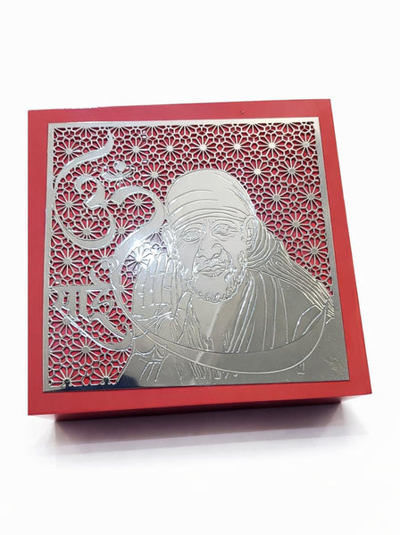 A beautfifully handcrafted Box box with a wooden structure and a silverplated Sai Baba carve out sheet. Om Sai Ram !